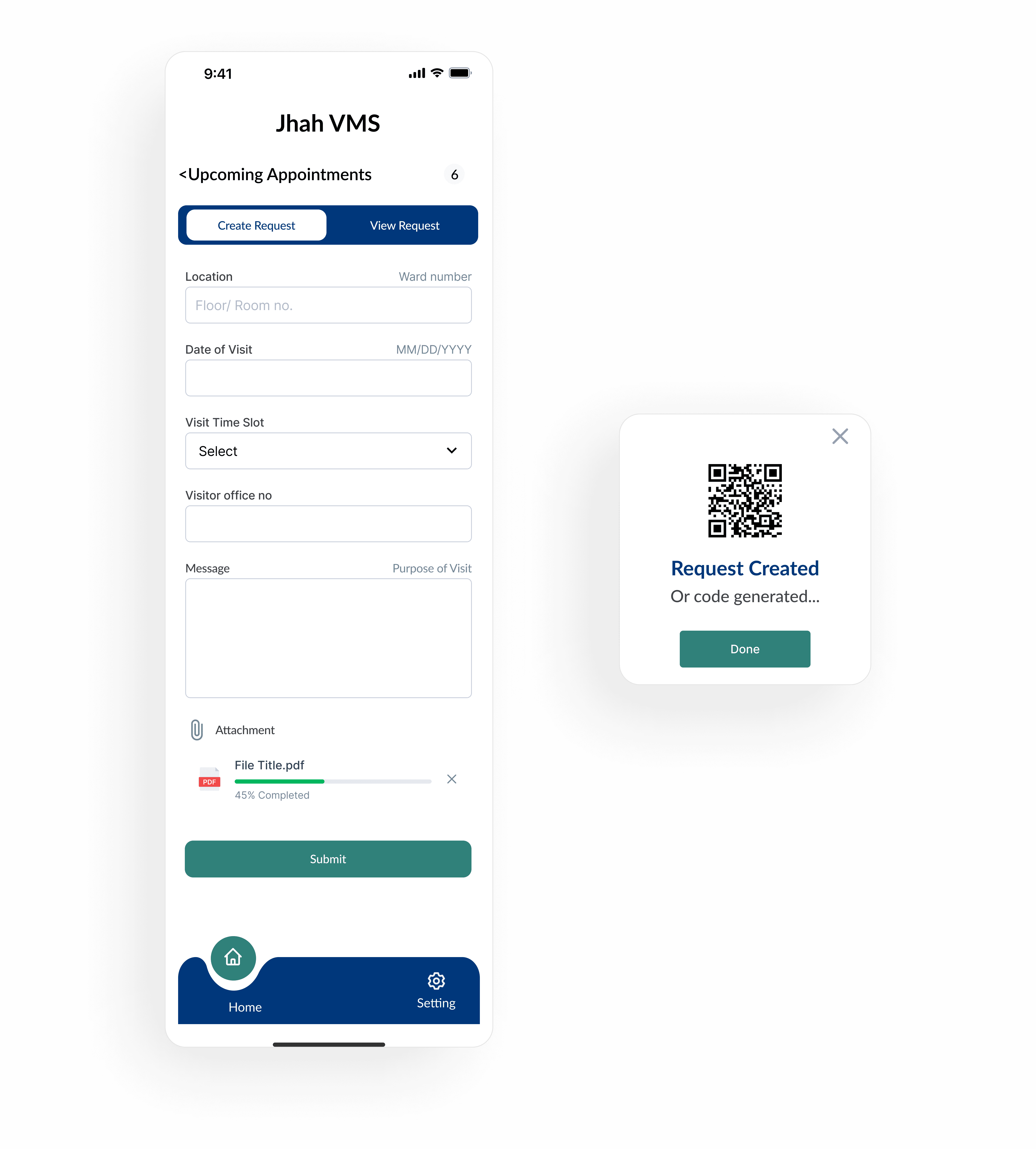Hospital visits were previously handled manually, creating long queues, paper-based approvals, and confusion for external visitors and vendors. The organization needed a digital visitor management system to: